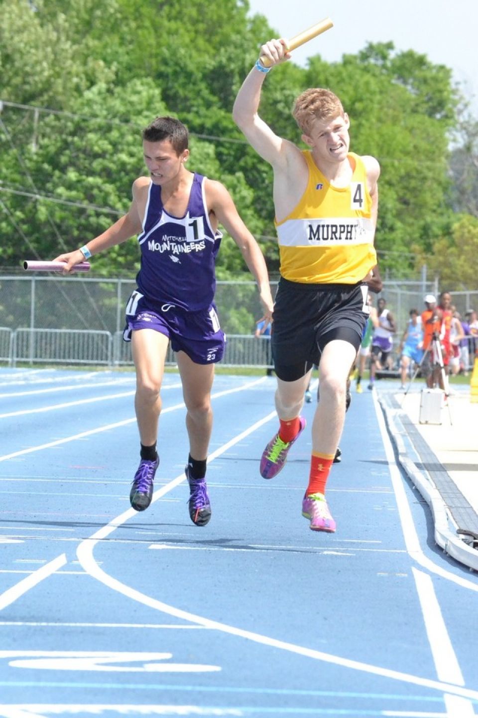 The 1A State Meet began with a competitive boys 4x800m relay with Murphy and Mitchell High School battling neck and neck from the first meter to the last. The Murphy boys won in the kick, but the Mitchell boys came back in the distance events with something to prove. Zach Boone and Brandon King took second and third in the 1600m, and first and third in the 3200m. Chris O’Brien (Raleigh Charter) took home three medals, setting a new 1A State Meet record in the 1600m and placing second in both the 800m and 3200.